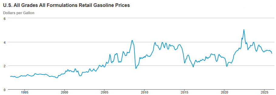 In March of 2004, analysts started flagging volatility in oil futures when gas hit a peak average of $1.78 a gallon. This was the highest it had ever been. And it wasn’t done climbing. January of 2005, it was $1.88 a gallon. By September that year, it would hit $2.95, and crest at $4.11 in June 2008 after a steady climb.