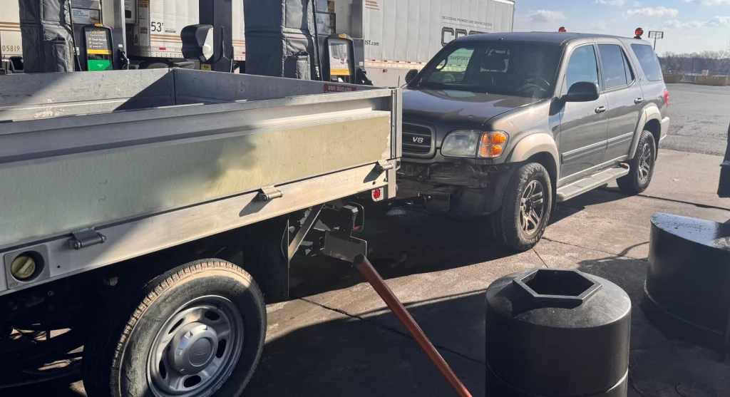 The Sequoia weighs close to 6,000 pounds. The rating on the tow bar is 5,000. The only reason I still followed through with the plan was because the truck I was towing with was rated for 11,000 pounds, and I had extra chain connected between the two vehicles in case of catastrophic failure. Nevertheless, only about $200 later between bracket, rental, and gas, and I had a Sequoia sitting in front of the house. Onto fixing it.